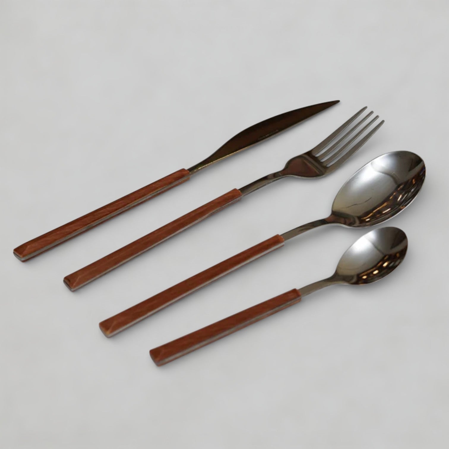 Enhance your dining table with this 12-piece stainless steel cutlery set, featuring elegant wooden handles for a stylish touch.