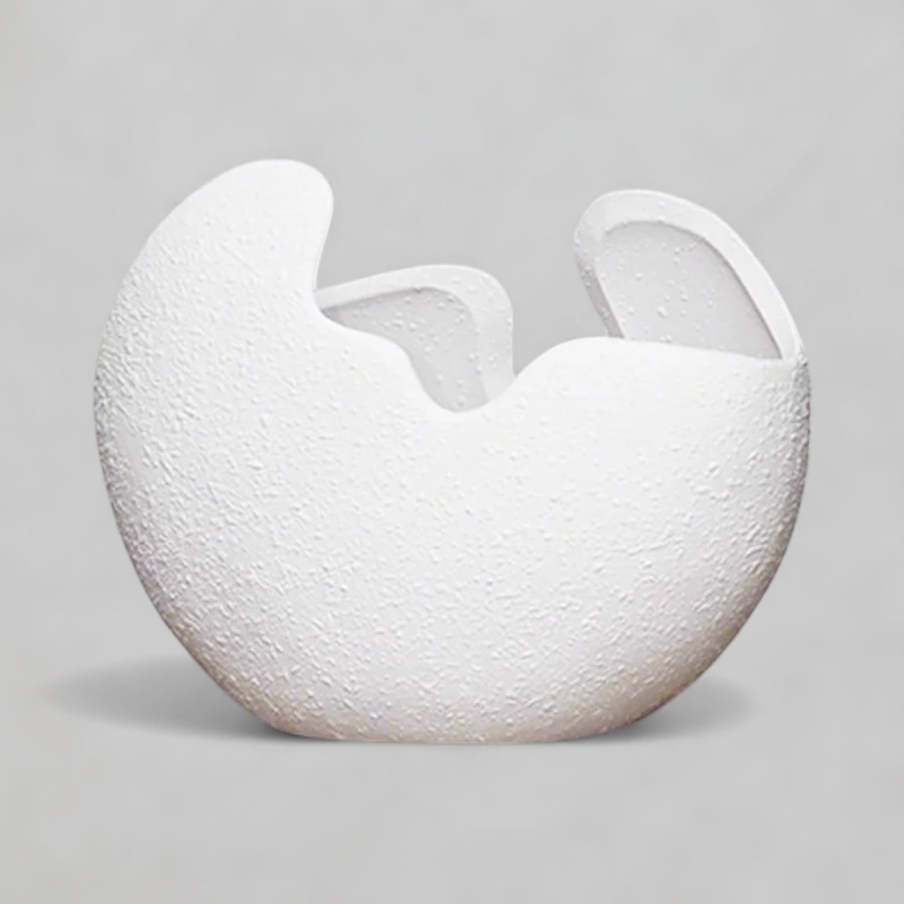 A modern ceramic pot designed with a unique sculptural form, perfect for showcasing succulents, hydroponic plants, or small floral arrangements. Its textured finish and contemporary design make it a versatile piece that blends seamlessly into homes, restaurants, and event settings. Whether used as a centerpiece, table accent, or gift, it adds a refined touch of elegance to any space throughout the year.