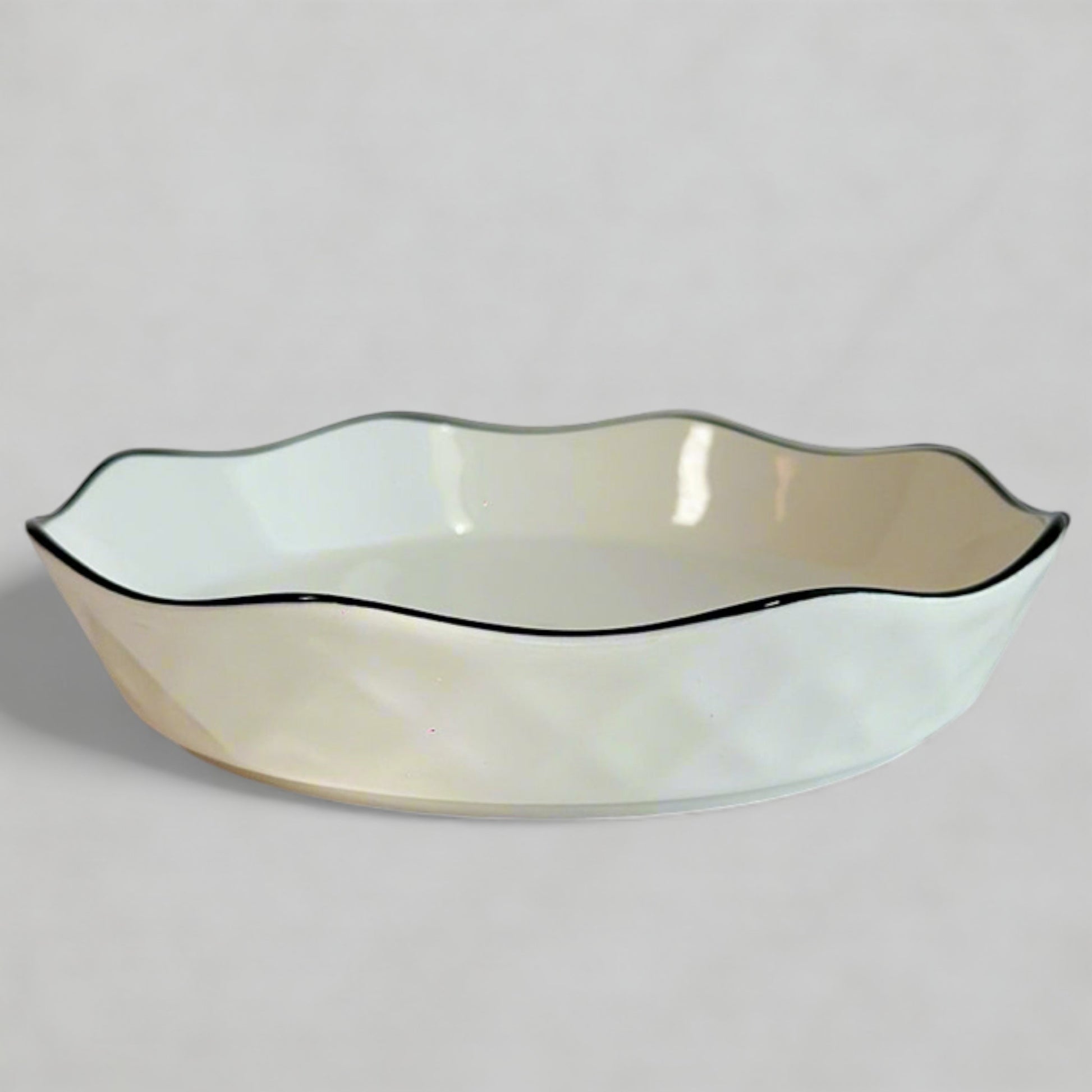 Delicately sculpted and inspired by nature, this lotus leaf ceramic plate brings texture, elegance, and functionality to your table. The softly curved edges and subtly waved form mimic the shape of a lotus petal, while the clean ivory glaze makes it easy to style with both modern and traditional settings.