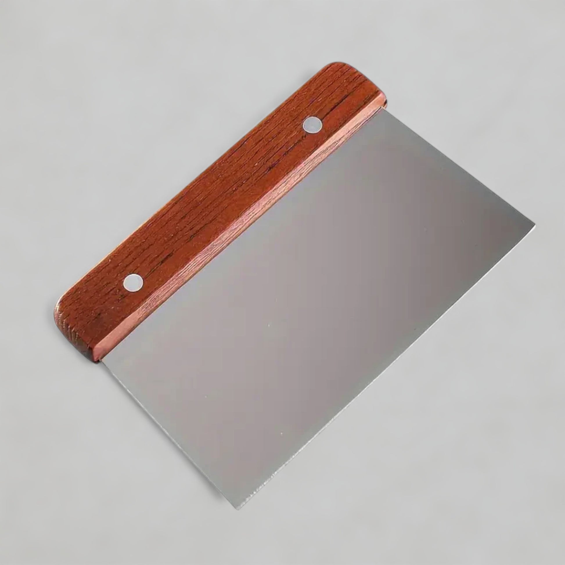 Designed for precision and durability, this stainless steel dough scraper is a must-have tool for bakers and home chefs alike. Its wide, flat blade is perfect for cutting dough, portioning pastry, and scraping work surfaces clean. The polished stainless steel edge ensures clean, even cuts, while the smooth wooden handle offers a firm, comfortable grip that feels natural in the hand.