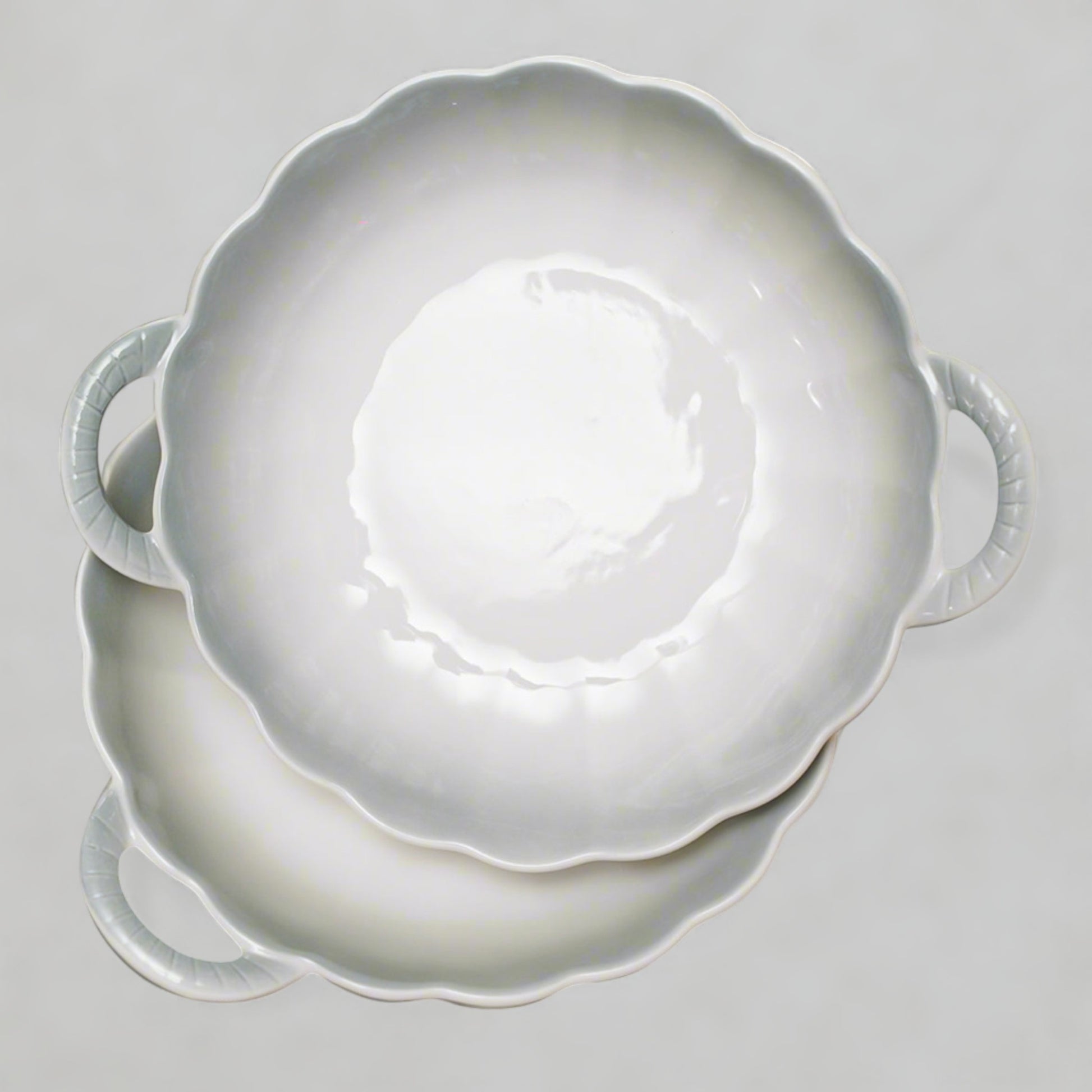 Add elegance to everyday dining with this Nordic-style ceramic plate, featuring a soft scalloped edge and integrated side handles for easy carrying. The minimalist white glaze complements any table setting, while the slightly deep design makes it perfect for serving salads, pasta, or main dishes. Crafted from high-quality ceramic, it's both microwave and dishwasher safe—built for style and practicality. A timeless piece that blends Nordic charm with everyday function.