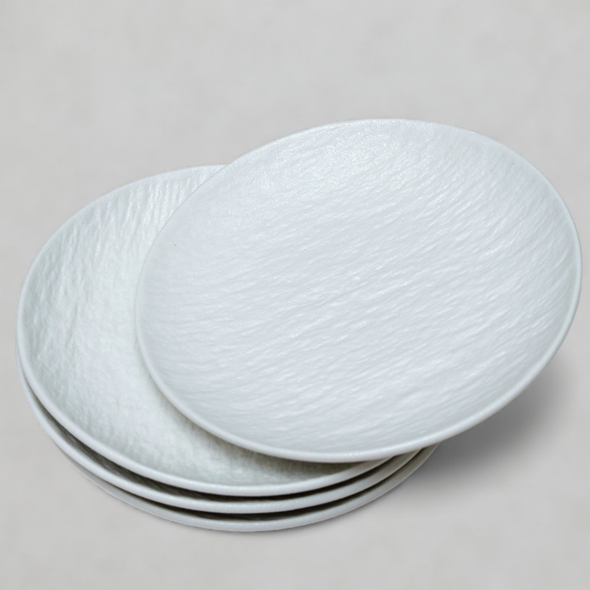 Add timeless elegance to your table with this set of four round ceramic plates, finished in a refined rock-textured pattern. The soft white matte glaze and gently speckled surface offer a clean yet rustic feel, making these plates ideal for both everyday meals and special occasions. Whether you're serving noodles, salads, or Western-style entrΓ©es, their balanced size and subtle texture elevate the presentation with ease. Durable, high-quality ceramic ensures long-lasting performance in your kitchen.