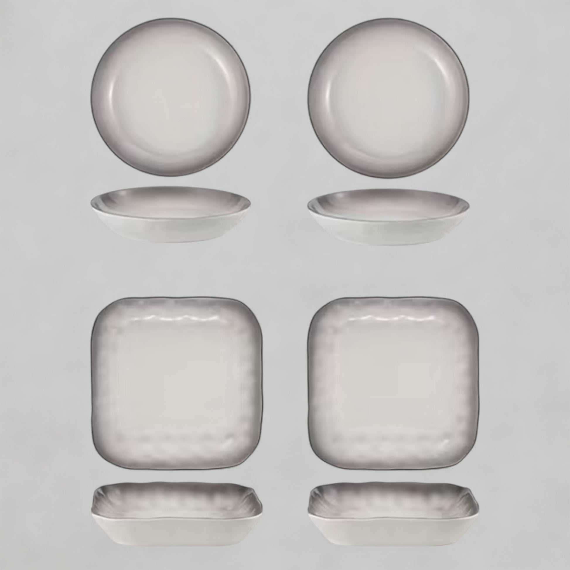 This timeless round & square ceramic plate is designed to bring effortless elegance to your table. Its clean shape is beautifully accented by a wavy rim, adding just the right amount of character without being too bold. Crafted from durable ceramic with a smooth glazed finish, it's ideal for serving main courses, salads, or sharing dishes. Its generous size and sturdy form make it both practical and stylish for everyday use or special occasions. Microwave and dishwasher safe.