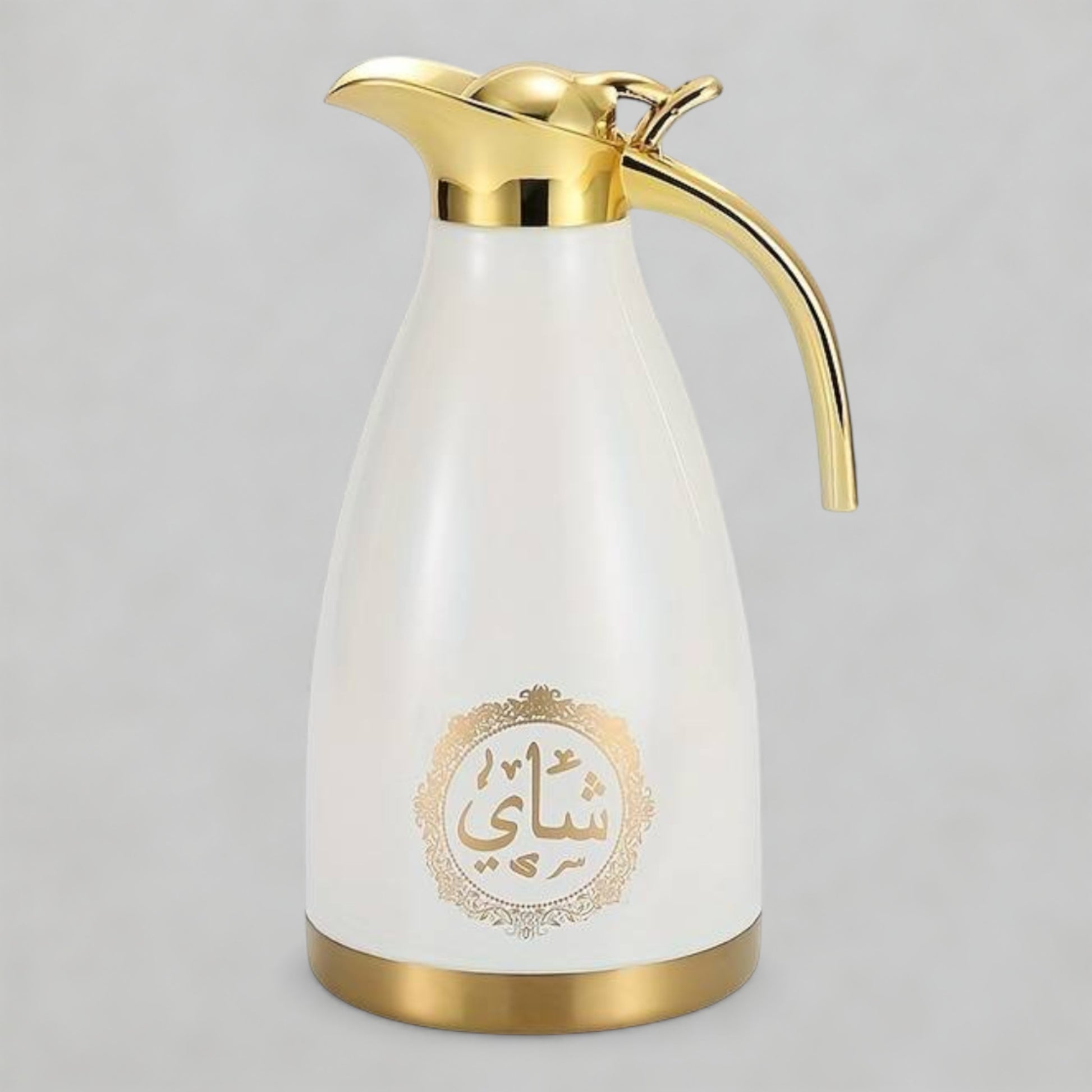Elegant and refined, Shay Al Sharq brings a graceful touch to your tea rituals. Designed in a soft white finish with golden Arabic calligraphy, this insulated kettle preserves the warmth of your tea while making a beautiful statement on any table.