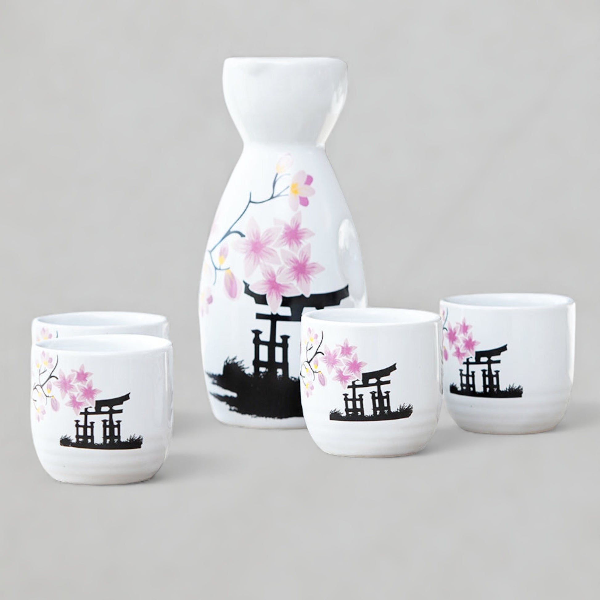 Add a touch of elegance to your kitchen with this Japanese-inspired ceramic dispenser set, perfect for serving syrups, honey, and other liquid condiments. Featuring a beautifully hand-painted cherry blossom design, this set includes a graceful carafe and matching cups, making it an ideal choice for breakfast tables, coffee rituals, or dessert presentations. Crafted from high-quality ceramic, it ensures durability while maintaining a refined aesthetic. Whether used at home, in cafes, or for entertaining guests, this set elevates every serving experience.